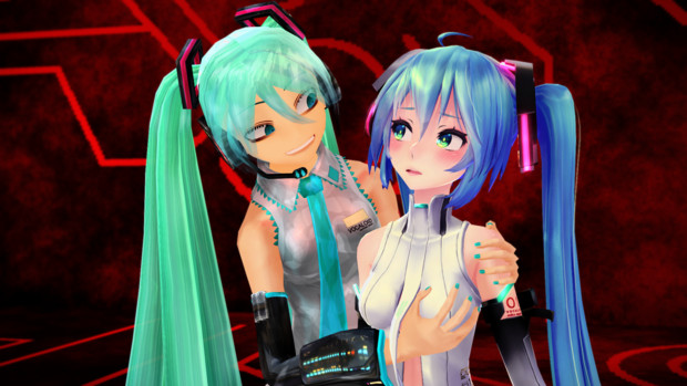 普通にミクとリンのイラストをネットから拾ってきて貼り付けてるだけで